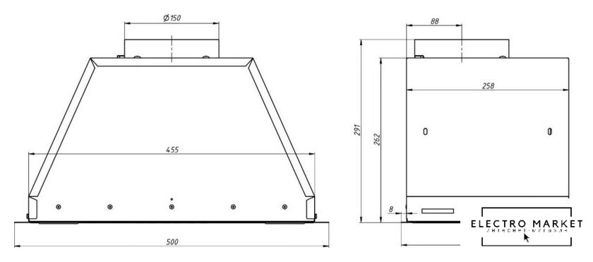 конструкция наклонная, монтаж настенный, ширина 60 см, управление механическое/кнопочное, производительность мотора 850 м³/ч, цвет нержавеющая сталь/черный