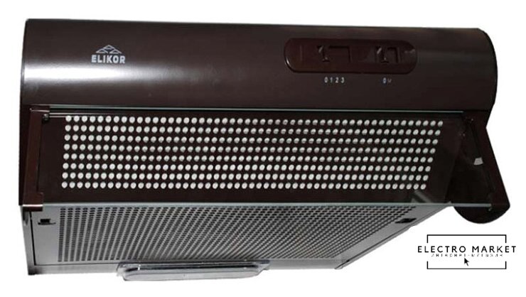 конструкция телескопическая, монтаж для встраивания, управление механическое/кнопочное, производительность мотора 400 м³/ч, ширина 45 см