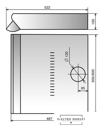 конструкция телескопическая, монтаж для встраивания, управление механическое/кнопочное, производительность мотора 400 м³/ч, ширина 45 см
