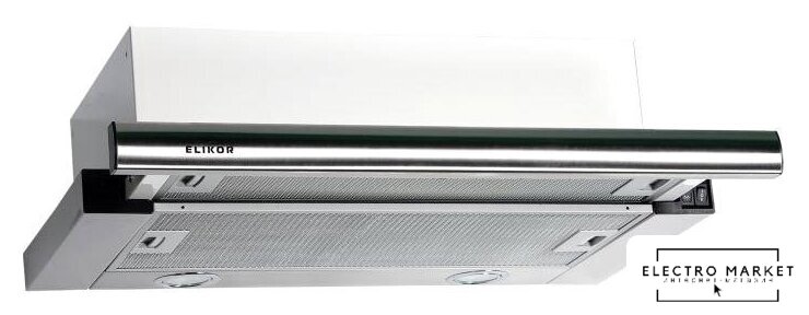конструкция скрытая, монтаж для встраивания, ширина 53.5 см, управление механическое/кнопочное, производительность вытяжки 370 м³/ч, производительность мотора 700 м³/ч, цвет нержавеющая сталь