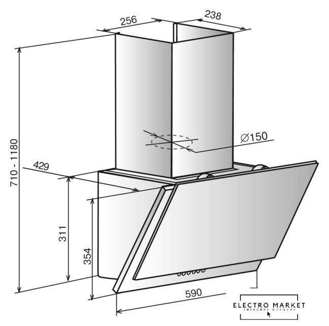 конструкция наклонная, монтаж настенный, ширина 60 см, управление сенсорное, производительность мотора 1260 м³/ч, цвет черный