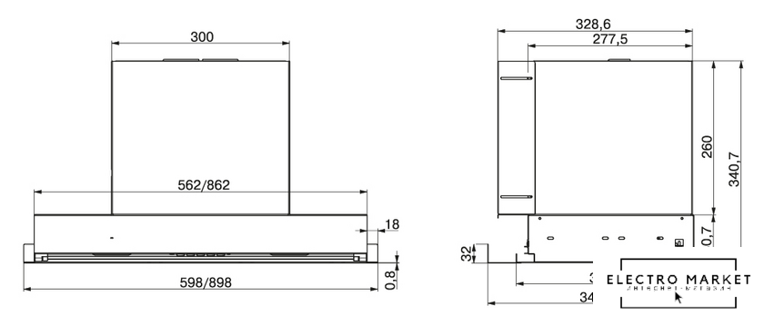 конструкция скрытая, монтаж для встраивания, ширина 71.4 см, управление электронное/кнопочное, производительность вытяжки 550 м³/ч, производительность мотора 1050 м³/ч, цвет нержавеющая сталь