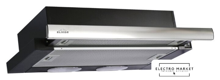 конструкция скрытая, монтаж для встраивания, ширина 53.5 см, управление механическое/кнопочное, производительность вытяжки 370 м³/ч, производительность мотора 700 м³/ч, цвет нержавеющая сталь