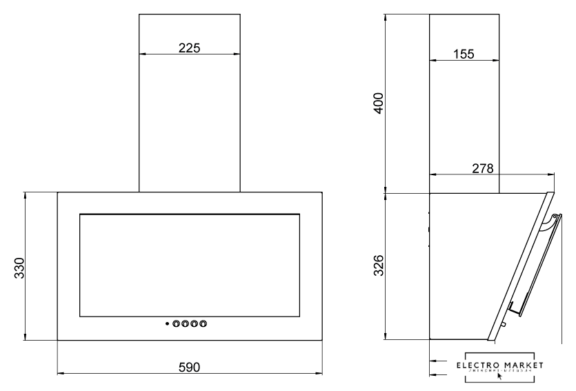 конструкция коробчатая, монтаж настенный, ширина 40 см, управление электронное/кнопочное, производительность вытяжки 850 м³/ч, производительность мотора 1050 м³/ч, цвет белый