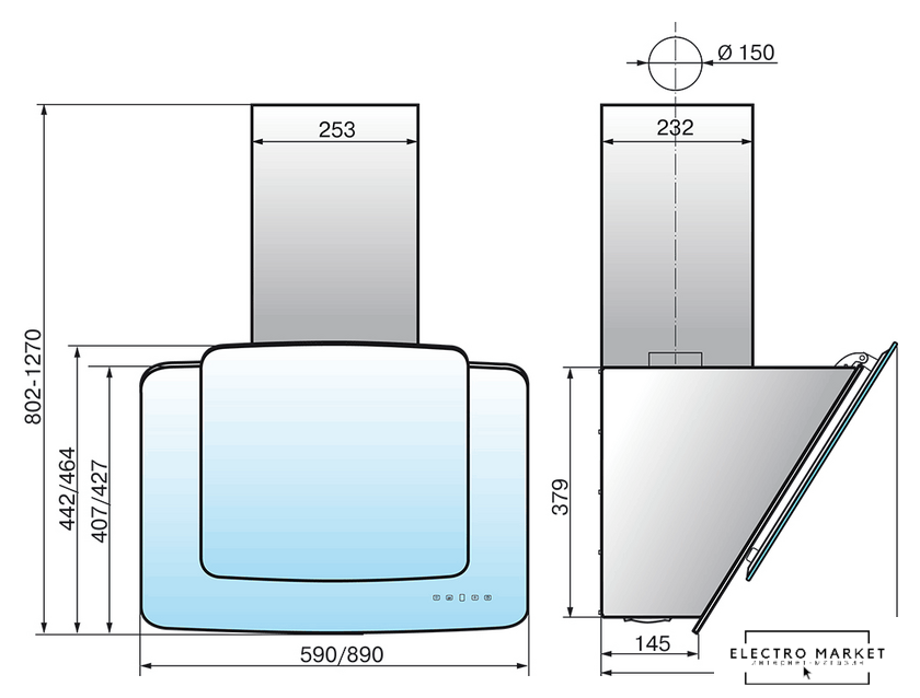 конструкция наклонная, монтаж настенный, ширина 59.7 см, управление сенсорное, производительность мотора 900 м³/ч, цвет белый