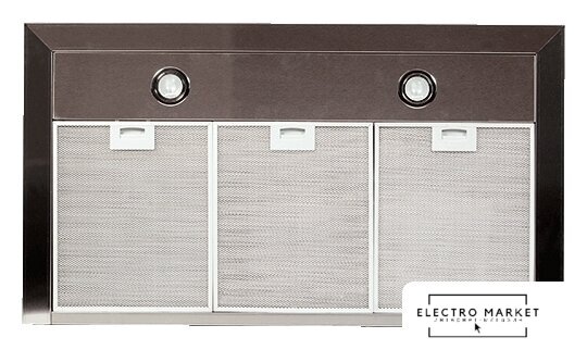 конструкция скрытая, монтаж для встраивания, ширина 52 см, управление электронное/кнопочное, производительность мотора 800 м³/ч, цвет черный