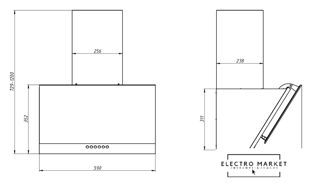 конструкция наклонная, монтаж настенный, управление сенсорное, производительность мотора 450 м³/ч, ширина 60 см