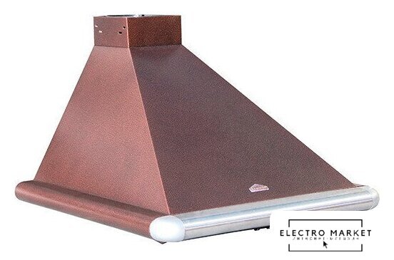 конструкция купольная, монтаж настенный, ширина 49 см, управление механическое/кнопочное, производительность мотора 180 м³/ч, цвет золотой/медный