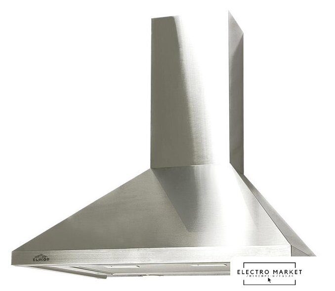 конструкция купольная, монтаж настенный, ширина 60 см, управление механическое/кнопочное, производительность мотора 500 м³/ч, цвет нержавеющая сталь