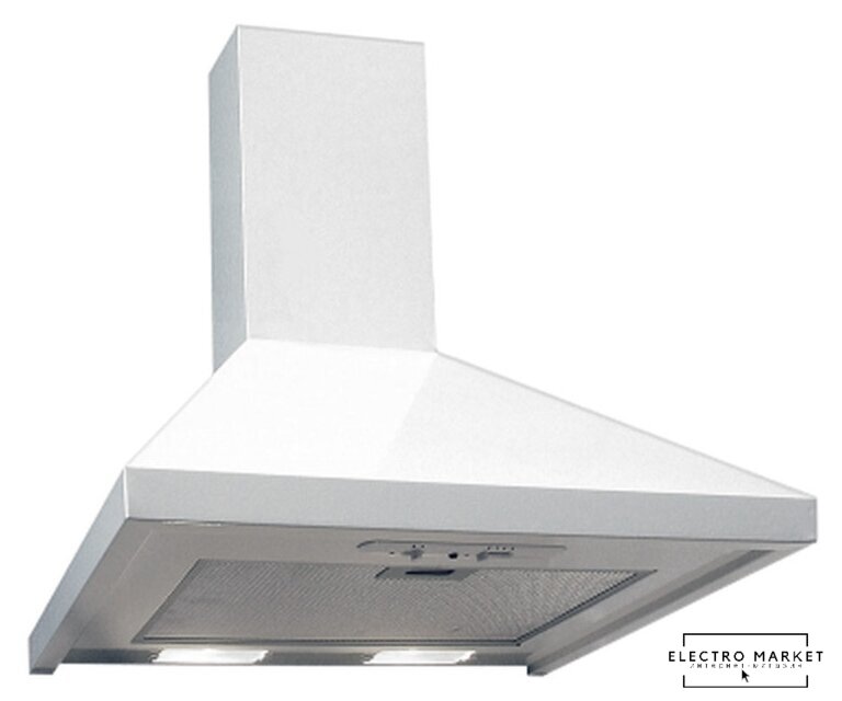 конструкция купольная, монтаж настенный, ширина 60 см, управление механическое/кнопочное, производительность мотора 500 м³/ч, цвет белый