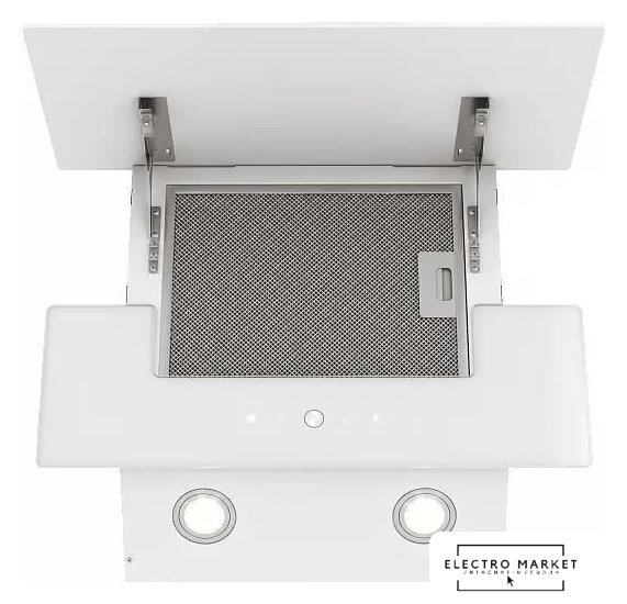 конструкция наклонная, монтаж настенный, ширина 59.5 см, управление сенсорное, производительность мотора 850 м³/ч, цвет черный