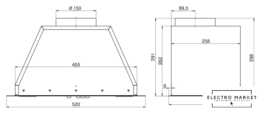 конструкция скрытая, монтаж для встраивания, ширина 52 см, управление механическое/кнопочное, производительность мотора 1010 м³/ч, цвет нержавеющая сталь