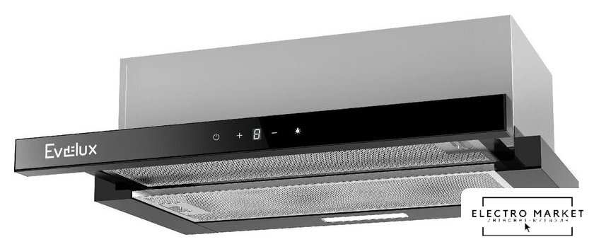 конструкция телескопическая, монтаж для встраивания, ширина 60 см, управление слайдерное, производительность мотора 550 м³/ч, цвет черный