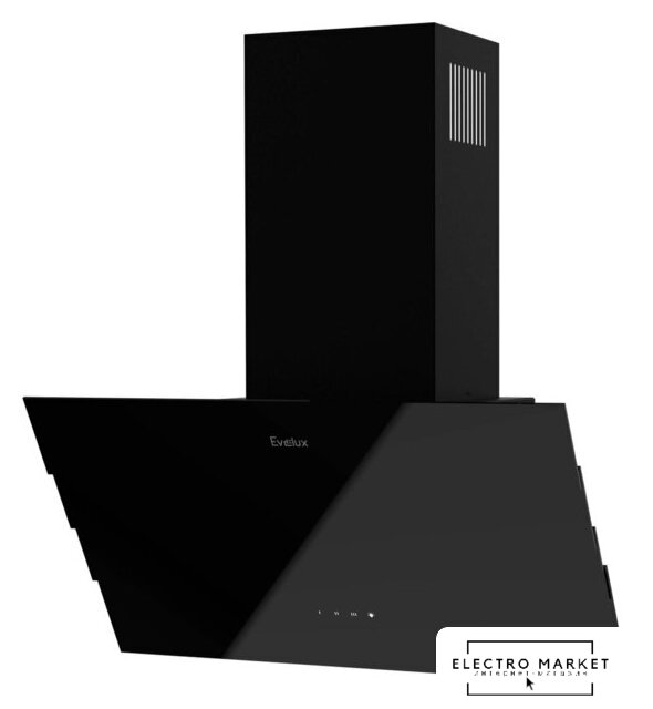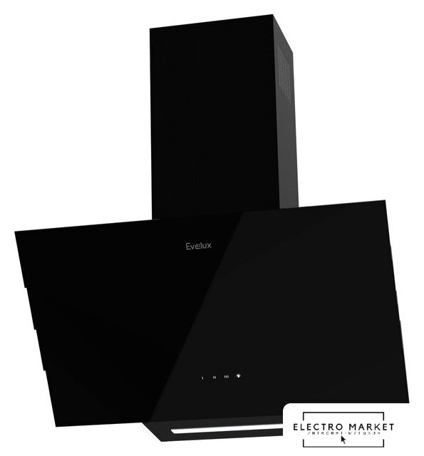 конструкция купольная, монтаж настенный, ширина 59.5 см, управление механическое/кнопочное, производительность мотора 650 м³/ч, цвет черный