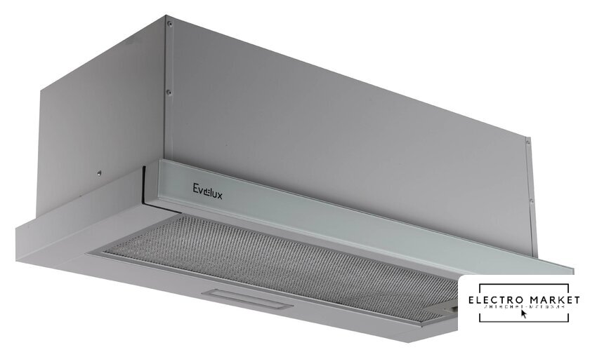 конструкция телескопическая, монтаж для встраивания, ширина 59.7 см, управление механическое/кнопочное, производительность мотора 1500 м³/ч, цвет бежевый