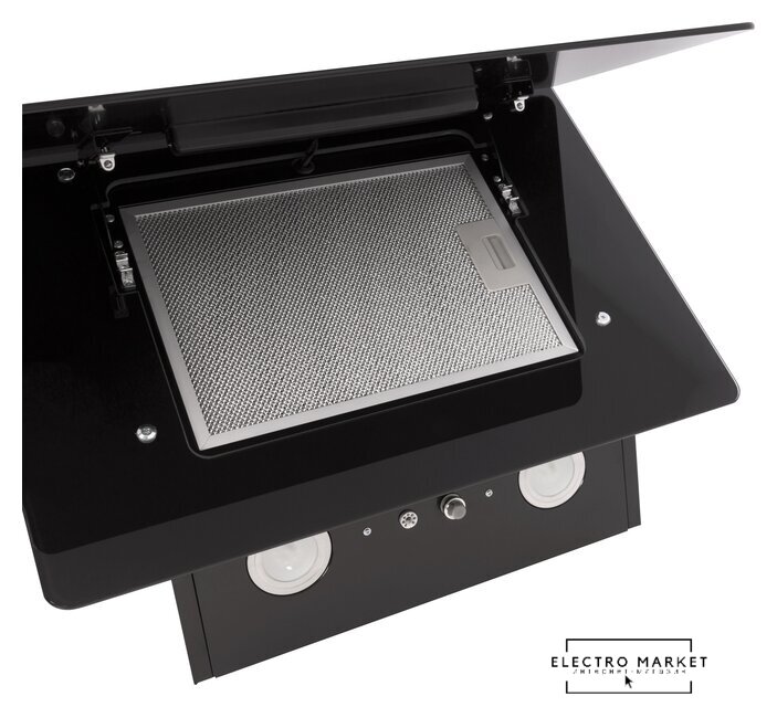 конструкция наклонная, монтаж настенный, ширина 60 см, управление сенсорное, производительность мотора 1000 м³/ч, цвет черный