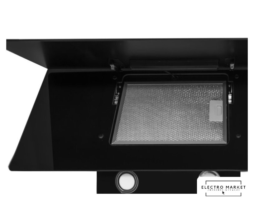 конструкция скрытая, монтаж для встраивания, ширина 52 см, управление сенсорное, производительность мотора 900 м³/ч, цвет черный