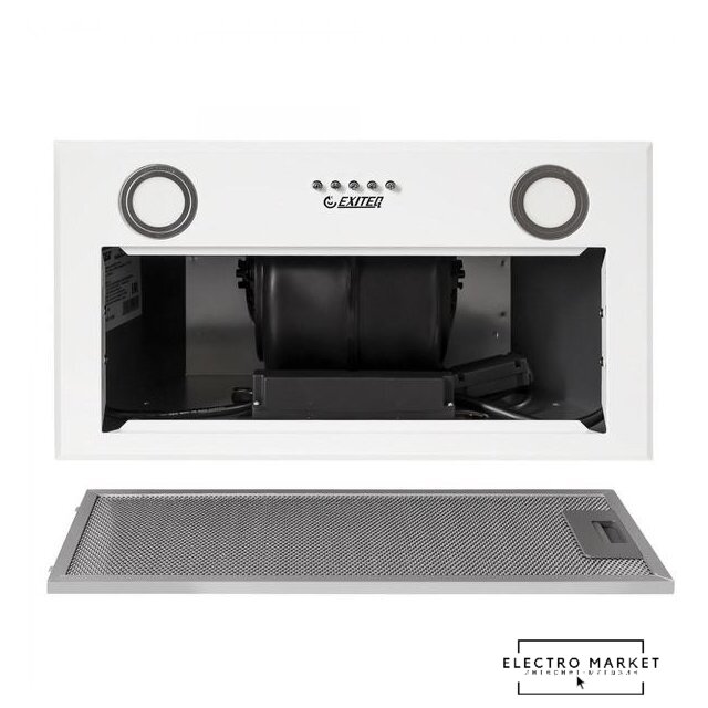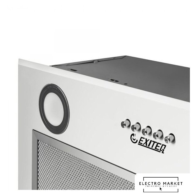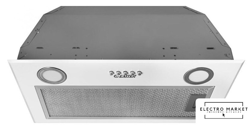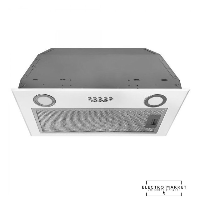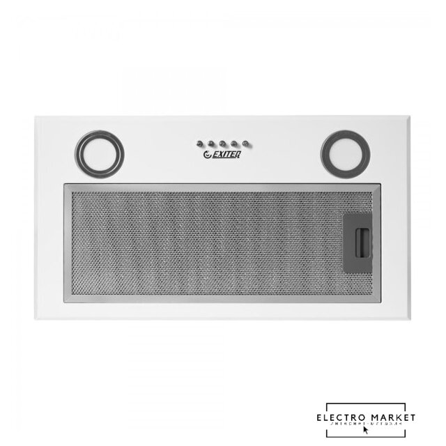 конструкция наклонная, монтаж настенный, ширина 59 см, управление механическое/кнопочное, производительность мотора 430 м³/ч, цвет белый