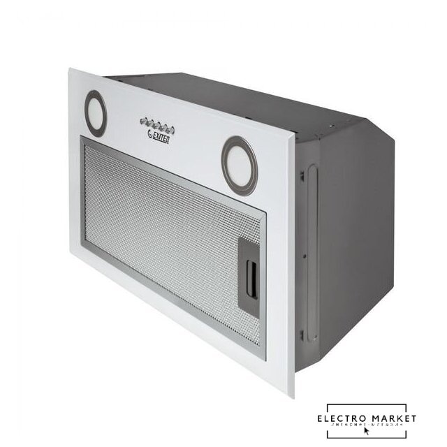 конструкция наклонная, монтаж настенный, ширина 59.5 см, управление механическое/кнопочное, производительность вытяжки 700 м³/ч, производительность мотора 840 м³/ч, цвет белый