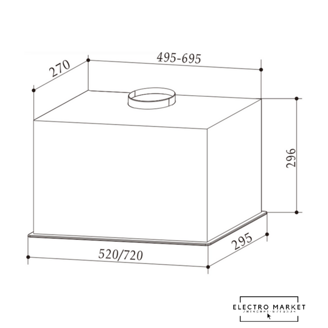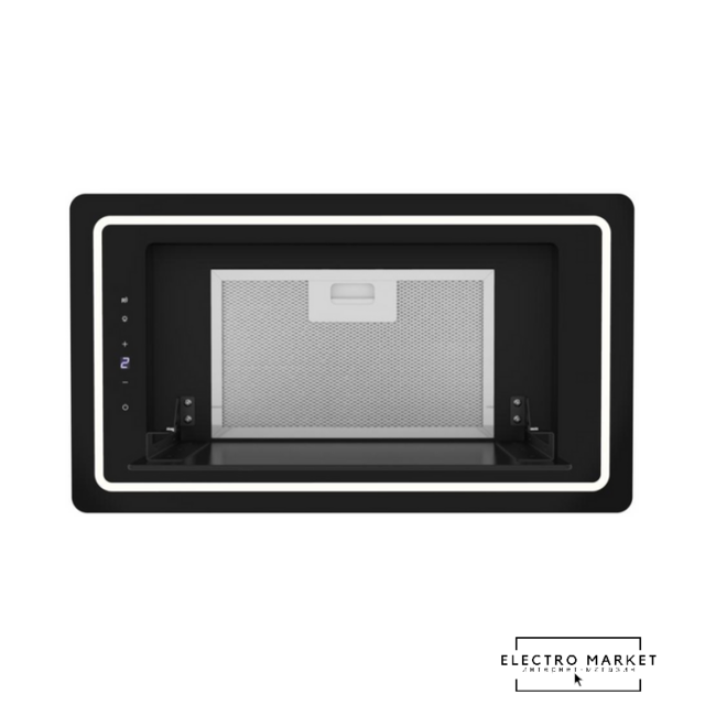 конструкция скрытая, монтаж для встраивания, ширина 59.8 см, управление сенсорное, производительность мотора 1030 м³/ч, цвет черный