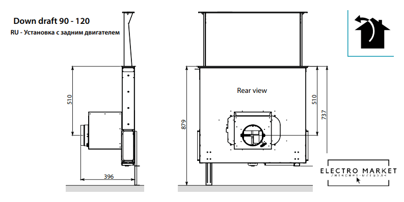 конструкция телескопическая, монтаж для встраивания в столешницу, ширина 83.5 см, управление электронное/кнопочное, производительность вытяжки 515 м³/ч, производительность мотора 1200 м³/ч, цвет черный