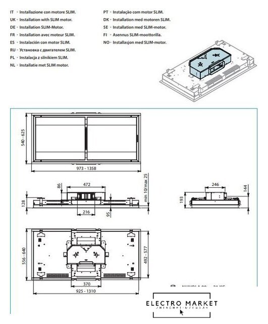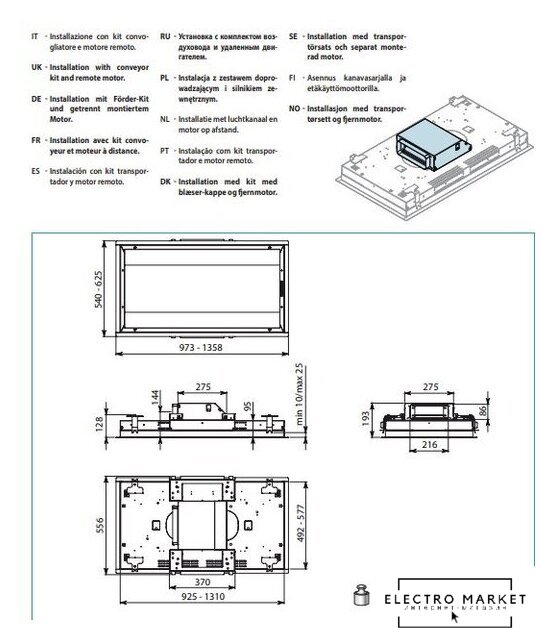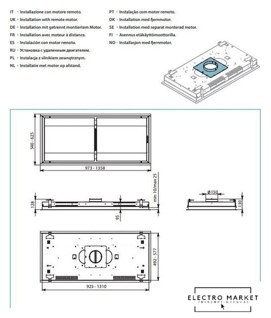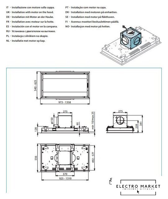 конструкция скрытая, монтаж для встраивания в столешницу, ширина 51 см, управление сенсорное, производительность вытяжки 470 м³/ч, цвет черный