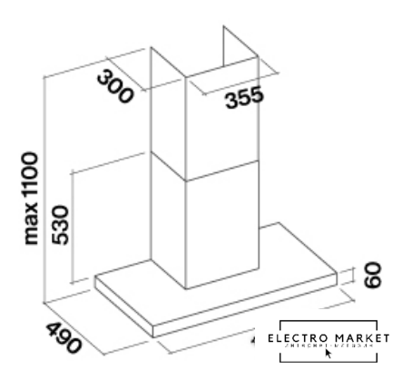 конструкция коробчатая, монтаж настенный, ширина 59.6 см, управление сенсорное, производительность вытяжки 395 м³/ч, цвет мятный/черный