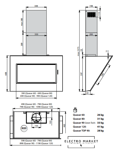 конструкция наклонная, монтаж настенный, управление электронное/кнопочное, производительность вытяжки 649 м³/ч, ширина 75 см
