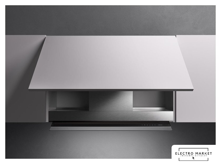 конструкция наклонная, монтаж настенный, ширина 89.8 см, управление сенсорное, производительность вытяжки 625 м³/ч, производительность мотора 1200 м³/ч, цвет нержавеющая сталь