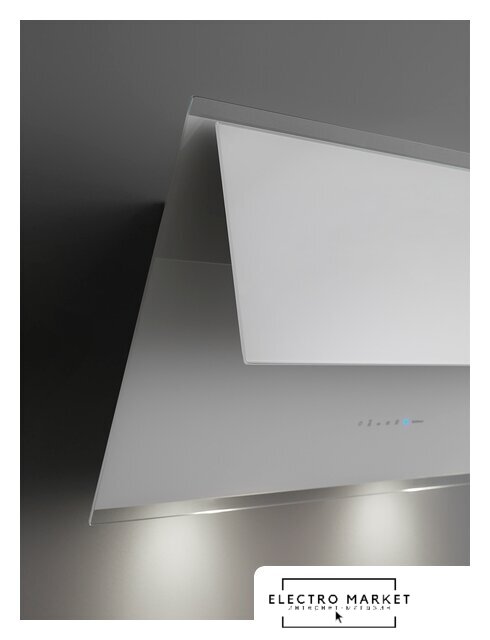 конструкция Т-образная, монтаж настенный, ширина 90 см, управление электронное/сенсорное, производительность вытяжки 400 м³/ч, производительность мотора 850 м³/ч