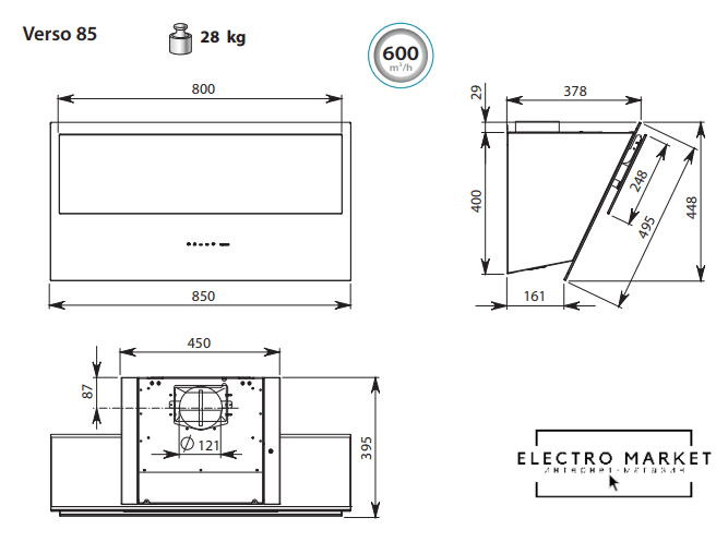 | Максимальная производительность отвода | 500 куб. м/ч |