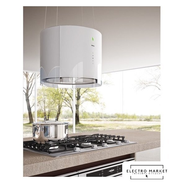 конструкция коробчатая, монтаж островной, ширина 120 см, управление электронное, производительность вытяжки 460 м³/ч, производительность мотора 1500 м³/ч, цвет бежевый/белый