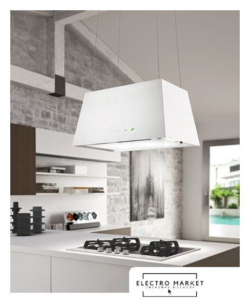 конструкция коробчатая, монтаж островной, ширина 120 см, управление электронное, производительность вытяжки 460 м³/ч, производительность мотора 1500 м³/ч, цвет бежевый/белый