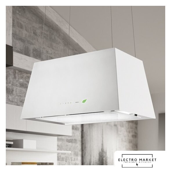 конструкция коробчатая, монтаж островной, ширина 54 см, управление электронное/поворотный переключатель, производительность мотора 600 м³/ч, цвет серый