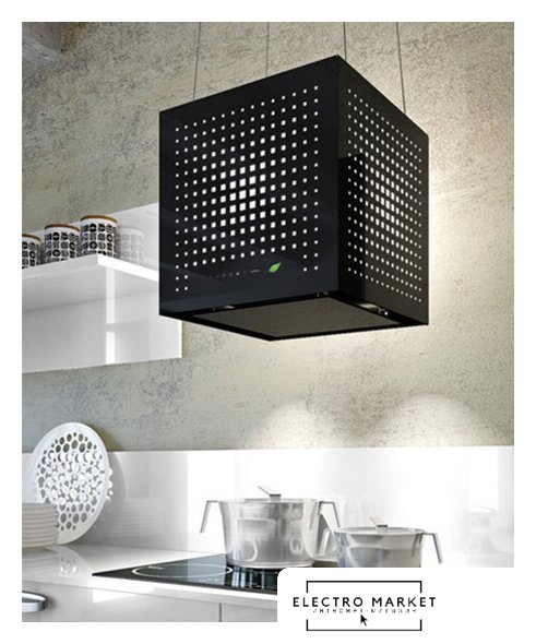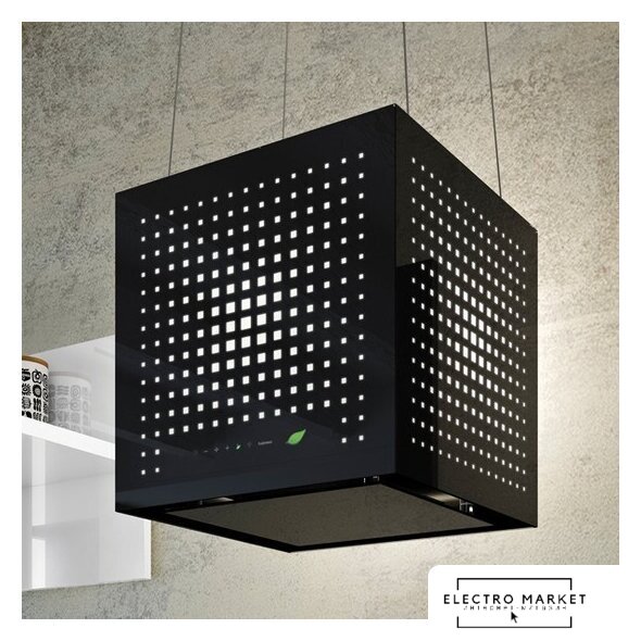 конструкция коробчатая, монтаж островной, ширина 45 см, управление сенсорное, производительность мотора 450 м³/ч, цвет черный
