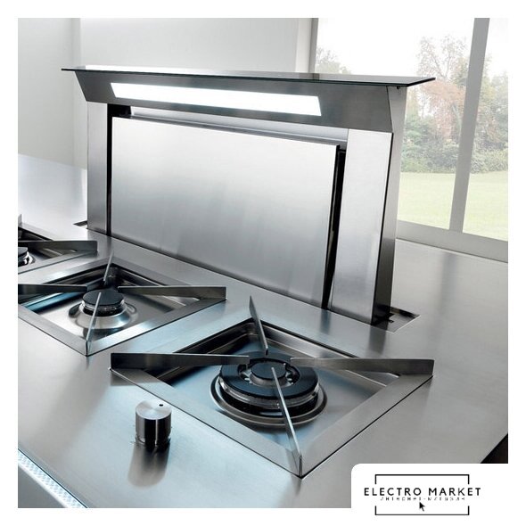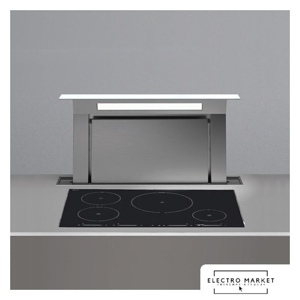 конструкция телескопическая, монтаж для встраивания в столешницу, ширина 86.2 см, управление сенсорное, производительность вытяжки 485 м³/ч, производительность мотора 1200 м³/ч, цвет серый