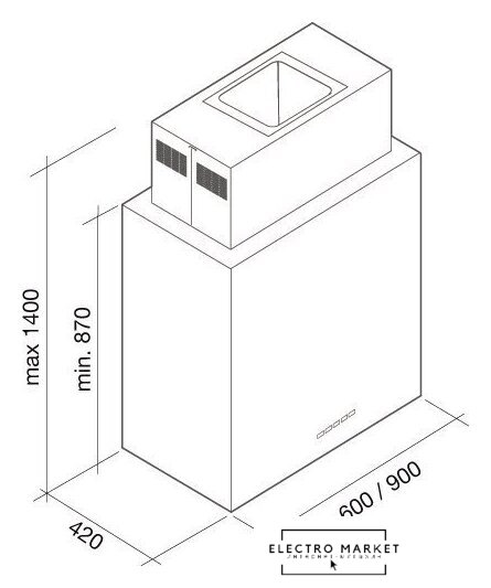конструкция коробчатая, монтаж островной, ширина 39 см, управление сенсорное, производительность мотора 1000 м³/ч, цвет белый