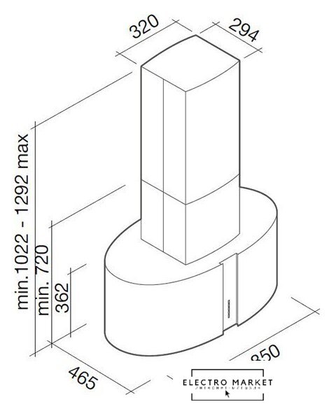 конструкция наклонная, монтаж настенный, ширина 80 см, управление электронное/сенсорное, производительность вытяжки 680 м³/ч, производительность мотора 800 м³/ч, цвет белый