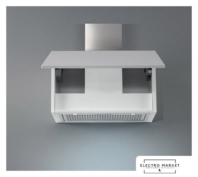 конструкция наклонная, монтаж настенный, ширина 79 см, управление сенсорное, производительность вытяжки 432 м³/ч, цвет белый