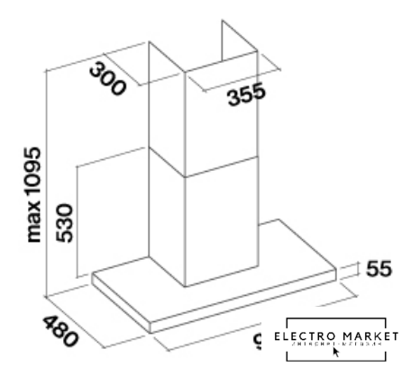 монтаж островной, управление электронное/кнопочное, производительность мотора 1000 м³/ч, ширина 120 см