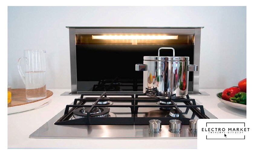 конструкция коробчатая, монтаж островной, ширина 119.8 см, управление электронное, производительность мотора 1100 м³/ч, цвет нержавеющая сталь
