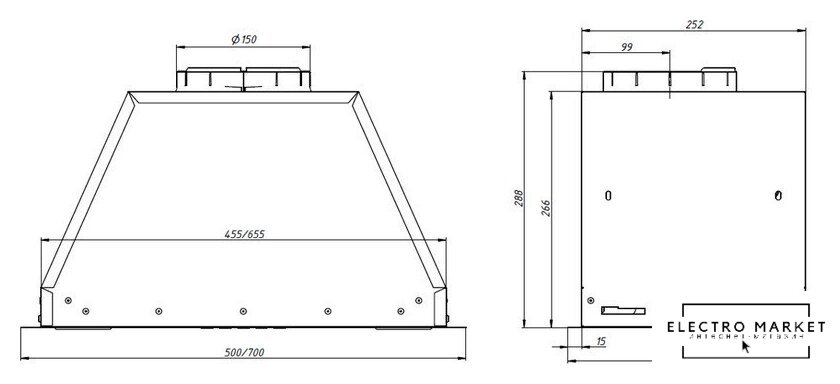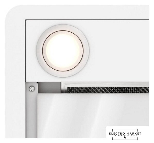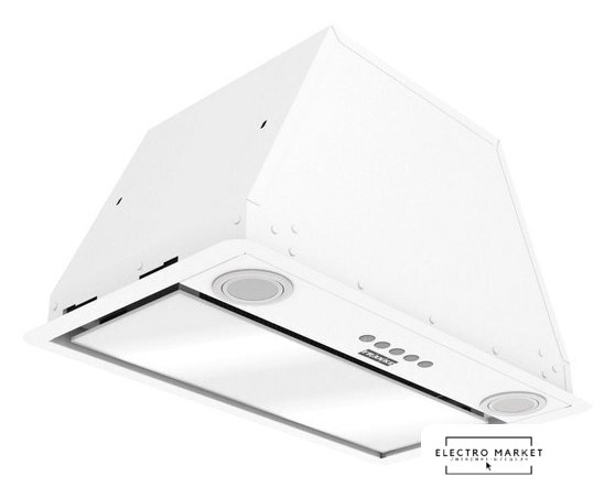 конструкция скрытая, монтаж для встраивания, ширина 59.7 см, управление сенсорное, производительность мотора 700 м³/ч, цвет белый