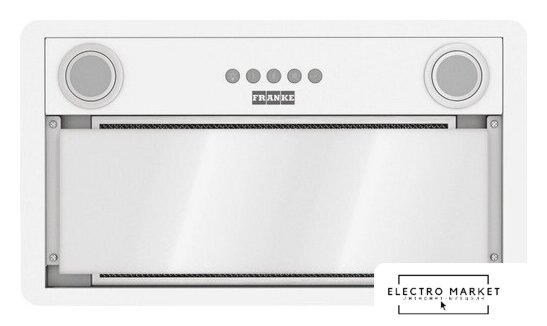 конструкция скрытая, монтаж для встраивания, ширина 60 см, управление поворотный переключатель, производительность мотора 560 м³/ч, цвет белый/нержавеющая сталь