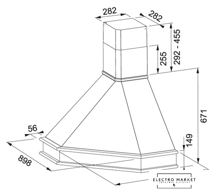 конструкция коробчатая, монтаж настенный, ширина 40.2 см, управление механическое/кнопочное, производительность мотора 1150 м³/ч, цвет золотой