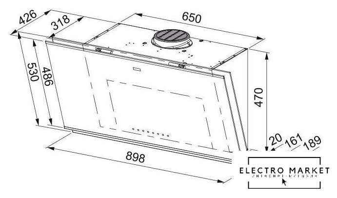 конструкция коробчатая, монтаж островной, управление электронное/кнопочное, производительность мотора 650 м³/ч, ширина 60 см