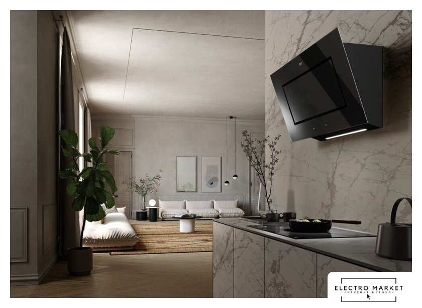 конструкция купольная, монтаж настенный, управление поворотный переключатель, производительность мотора 820 м³/ч, ширина 90 см