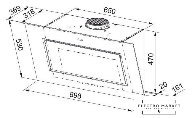 конструкция купольная, монтаж настенный, управление механическое/поворотный переключатель, производительность вытяжки 630 м³/ч, ширина 89.6 см