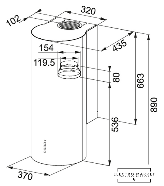 конструкция коробчатая, монтаж настенный, ширина 33.2 см, управление электронное/кнопочное, производительность вытяжки 559 м³/ч, производительность мотора 900 м³/ч, цвет белый