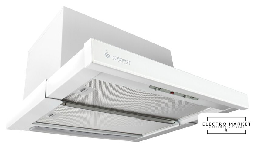 конструкция плоская, монтаж для встраивания, ширина 40 см, управление механическое/кнопочное, производительность мотора 1200 м³/ч, цвет белый