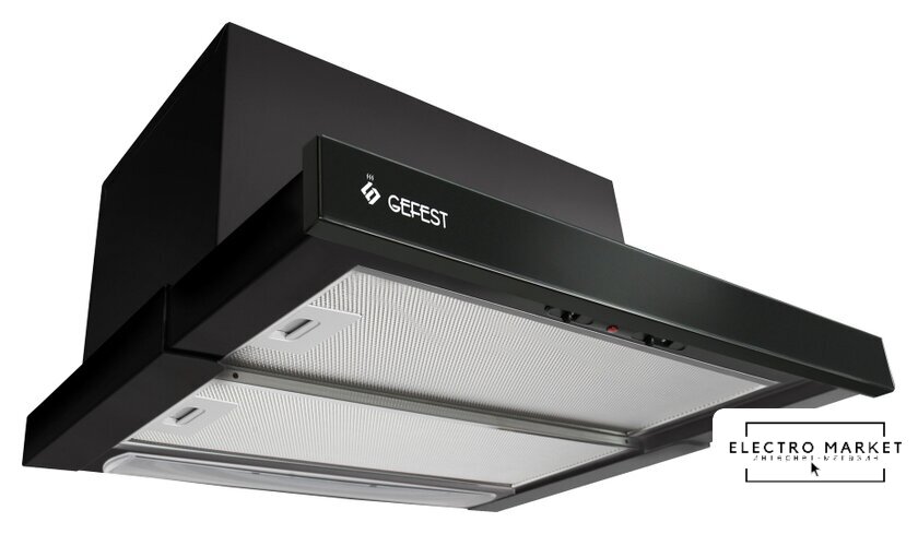 конструкция наклонная, монтаж настенный, ширина 60 см, управление электронное/кнопочное, производительность вытяжки 550 м³/ч, цвет черный